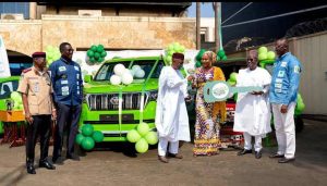 Winner of the brand new Toyota SUV, Sarah Ilya Madu, a Federal civil servant from Borno State, was full of joy when the keys were presented to her by Senator Simon Lalong who was the special guest, assisted by Senator Yemi Adaramodu, Chairman of the Senate Committee on Youth Development, as well as celebrities and influencers of the Globacom.