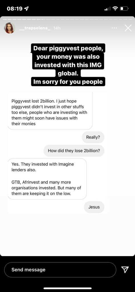 The rumours started after an Instagram user @_trapselena_ alleged that Piggyvest and some other top organizations in Nigeria invested in an allegedly fraudulent company, Imagine Lenders.