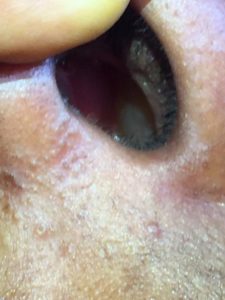 At present, part of the nostril is blocked, preventing her from breathing. She only breathes through her mouth. She has been battling this for months and her mother has spent millions of naira on medicine and hospital bills.