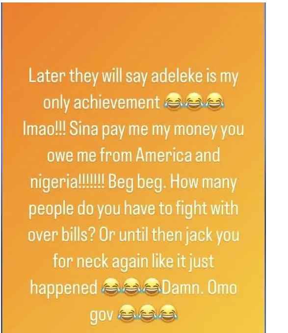 Sina Rambo’s wife, Korth has sadly announced the end of her marriage to the singer, who is also Davido’s cousin. The news was announced via the image-sharing app by his mother-of-one. According to her, Sina Rambo can’t provide financially for the family and would rather spend his money on weed. To add to it, he was disrespecting her mother.